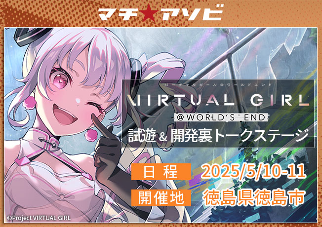 2025年5月10日(土)・11日(日)の2日間、徳島県徳島市にて開催される「マチ★アソビ Vol.28」にて『VIRTUAL GIRL @ WORLD’S END』の試遊ブース出展及び、開発裏トークステージの実施が決定!
